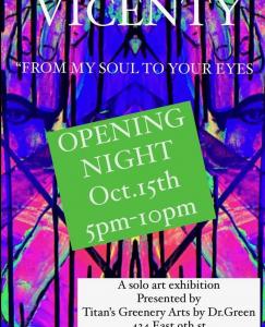 NEW YORK CITY, NEW YORK CITY, UNITED STATES, September 10, 2022 /EINPresswire.com/ -- On October 15th, contemporary pop artist Vicenty and Titan's Greenery Arts will host a Premier Exhibition of the artist's most prolific works. Admission is free and light refreshments will be offered beginning at 5 pm. The exhibit runs through 10/30.About the artist: Vicenty is a native New Yorker the self-taught artist whose early creations are a personal response to the impact of the Covid pandemic and its aftermath. Influenced by his friendship with Keith Haring years ago, Vicenty's vibrant mixed media art continues to evolve and document contemporary issues. To date, the artist has participated in numerous group shows since 2021 and has been represented by NYC Arts Empire, Vander Plas Gallery and the Brooklyn Art Cave amongst others.