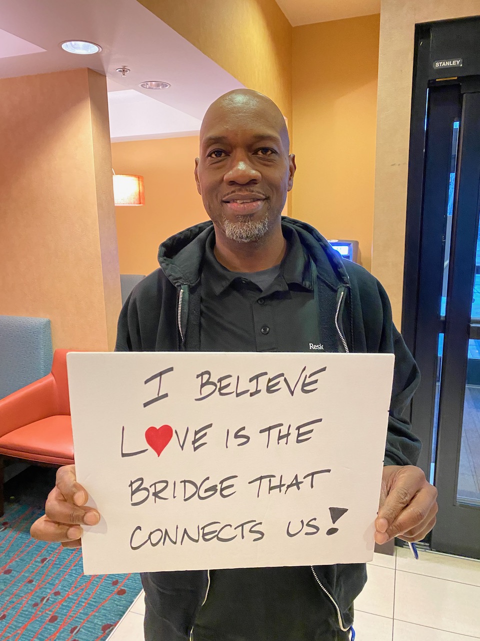 In Little Rock, Arkansas, Glodean met a hotel employee who said, "Not only do I believe that love is the bridge, I am willing to hold up love for everyone else who hasn't gotten there yet."