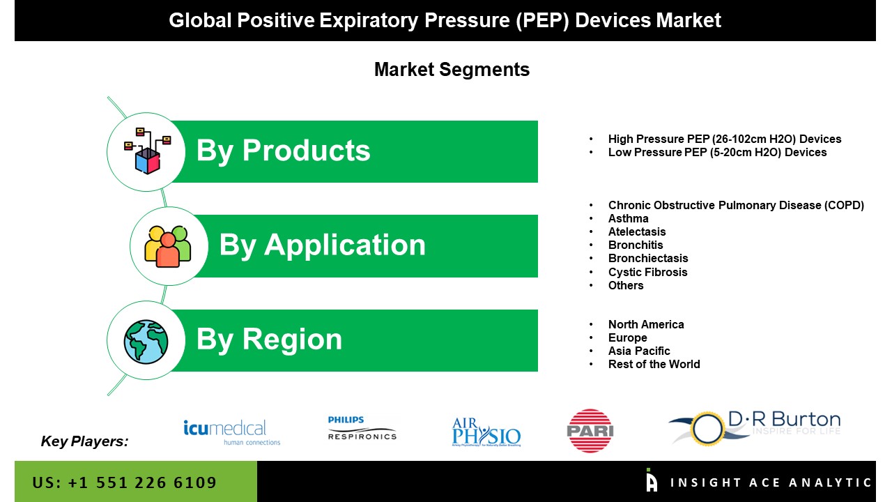 Major market players operating in the Positive Expiratory Pressure (PEP) Devices market include R. Cegla GmbH & Co. KG, PARI GmbH, AirPhysio, Smiths Medical, Inc. (ICU Medical), Philips Respironics, Monaghan Medical Corporation, Medica Holdings, LLC, DR Burton Healthcare and SoloPep.
