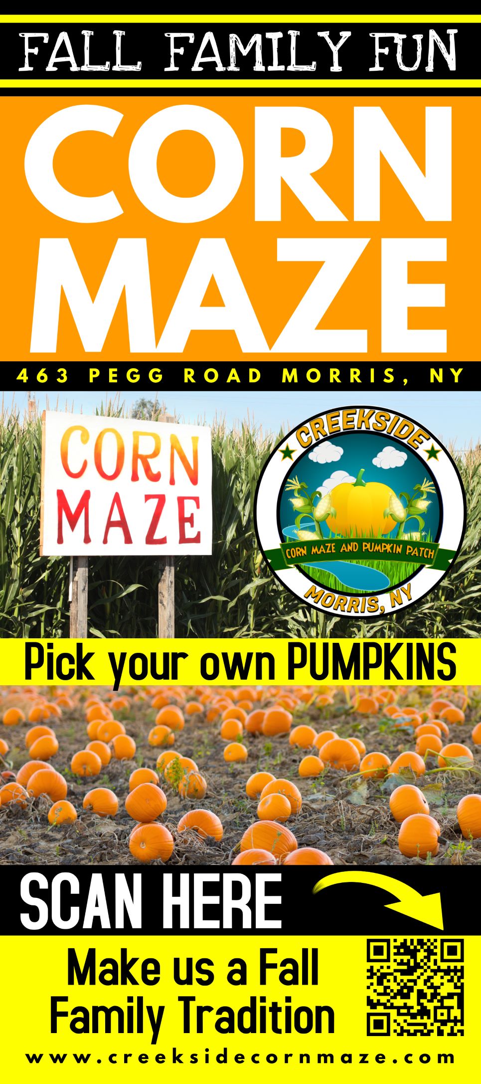 MORRIS, NY, UNITED STATES, September 13, 2022 /EINPresswire.com/ -- Families are always looking for fun and exciting places to enjoy with the kids. With the crisp days of fall approaching, the Szrowka family is sending out an invitation for adventure seekers to come and explore their Creekside Corn Maze. Opening weekend is September 23-25, 2022, and they will be open weekends throughout the fall.
