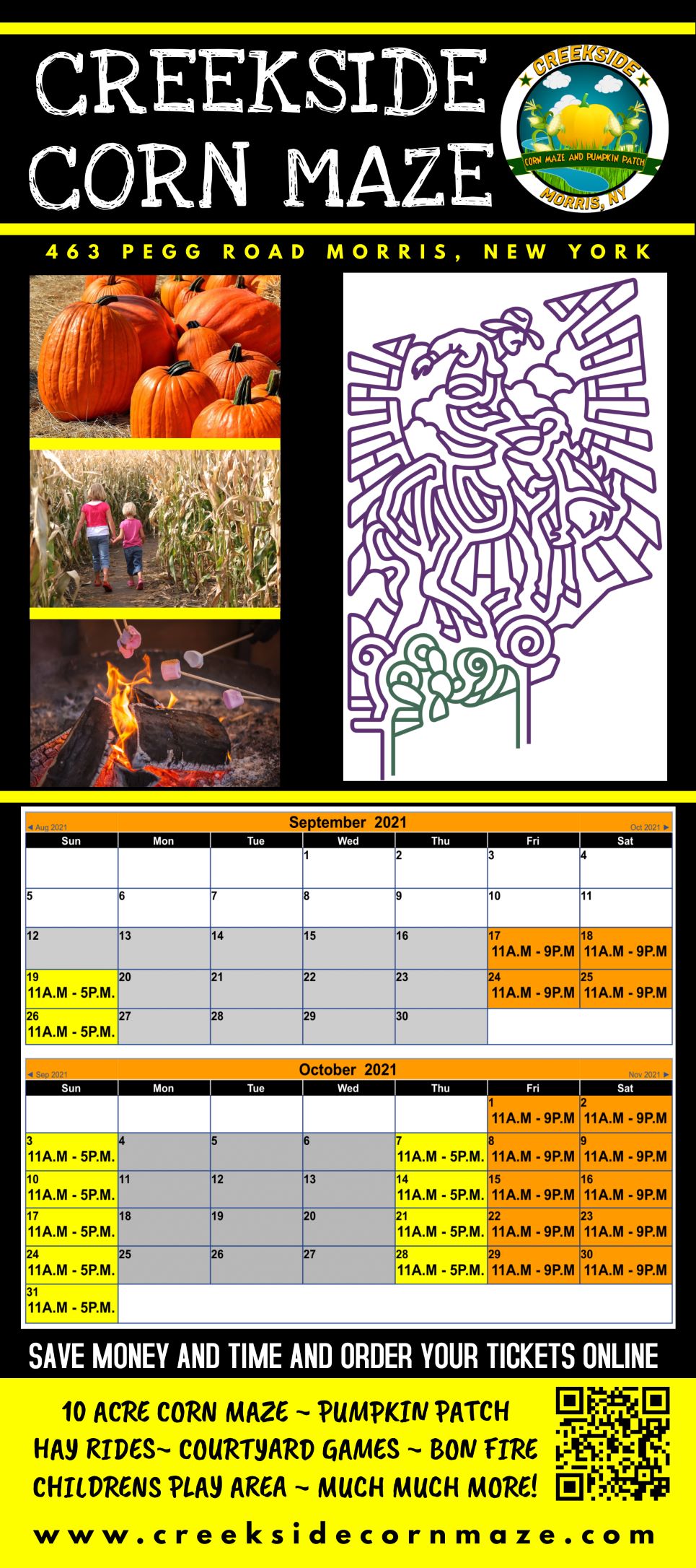 For more information, please contact the Szrowka family at phone: 607-263-0756 or Email: creeksidecornmaze@gmail.com or visit website: www.creeksidecornmaze.com.
