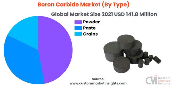 Browse the full "Boron Carbide Market Size, Share, Growth Analysis Report By Grade (Abrasive Grade, Nuclear & Defence Grade), By Type (Powder, Paste, Grains), By Application (Industrial, Nuclear, Defence), and By Region - Global Industry Overview, Statistical Data, Competitive Intelligence, Trends, Outlook, and Forecast 2022–2030" Report at https://www.custommarketinsights.com/report/boron-carbide-market/