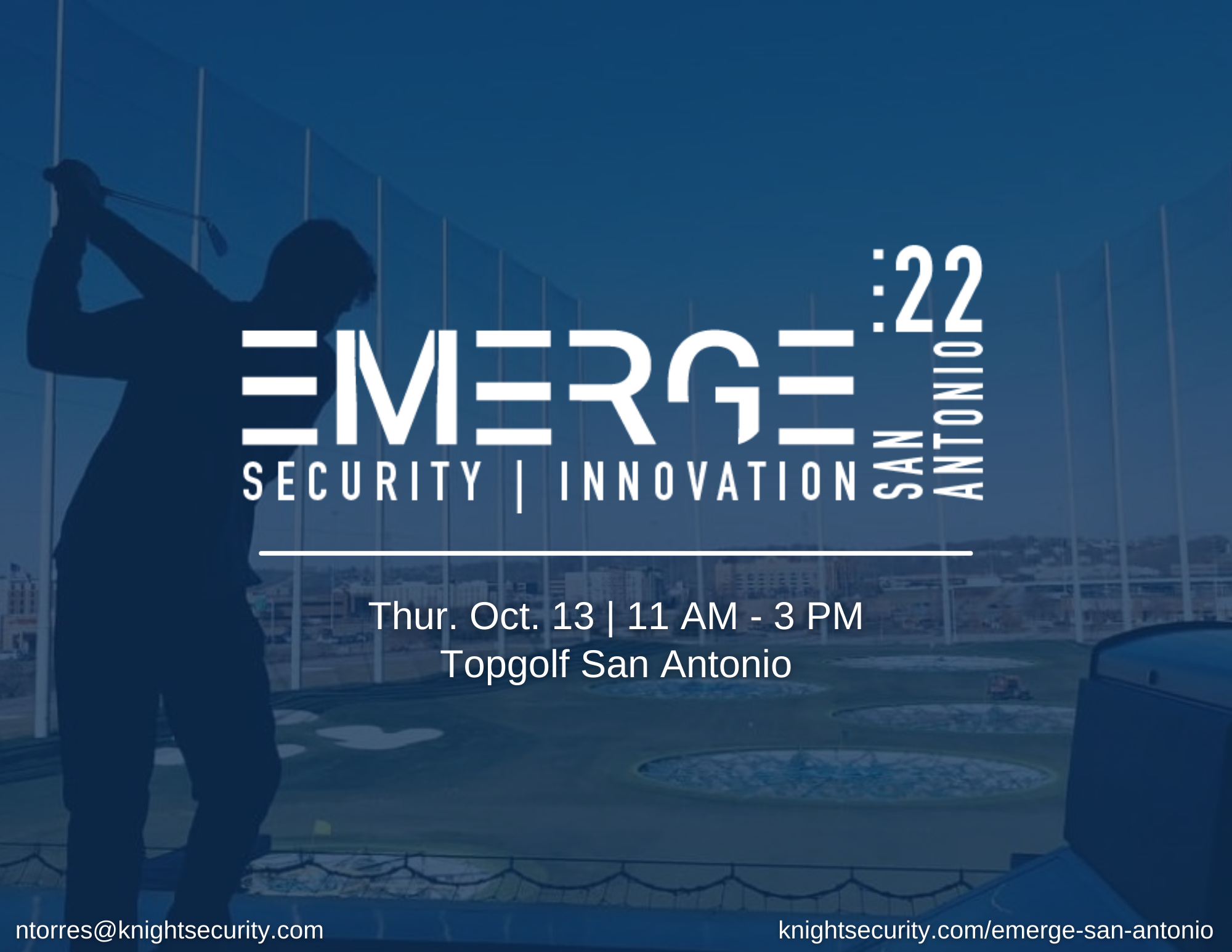 SAN ANTONIO, Sept. 13, 2022 (GLOBE NEWSWIRE) -- The world's leading security and business intelligence manufacturers will showcase emerging innovations in Physical Security, Smart City, and Cybersecurity technologies at EMERGE '22 San Antonio. The EMERGE '22 event will take place on Oct. 13 at Topgolf San Antonio, and although free, space is limited. This event will provide businesses, schools and colleges, local government, and law enforcement officials with the tools to manage their infrastructure, mitigate risks, build safer environments, and drive economic growth.