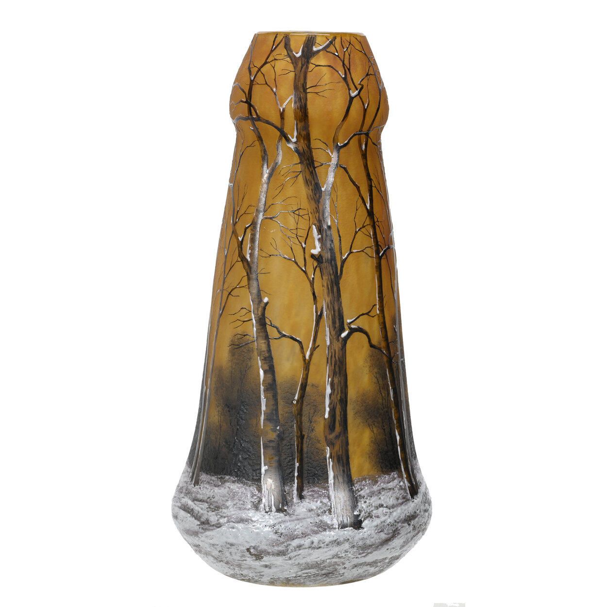 Signed Daum Nancy French cameo art glass vase, with a beautiful carved cameo and enameled winter scenic décor.