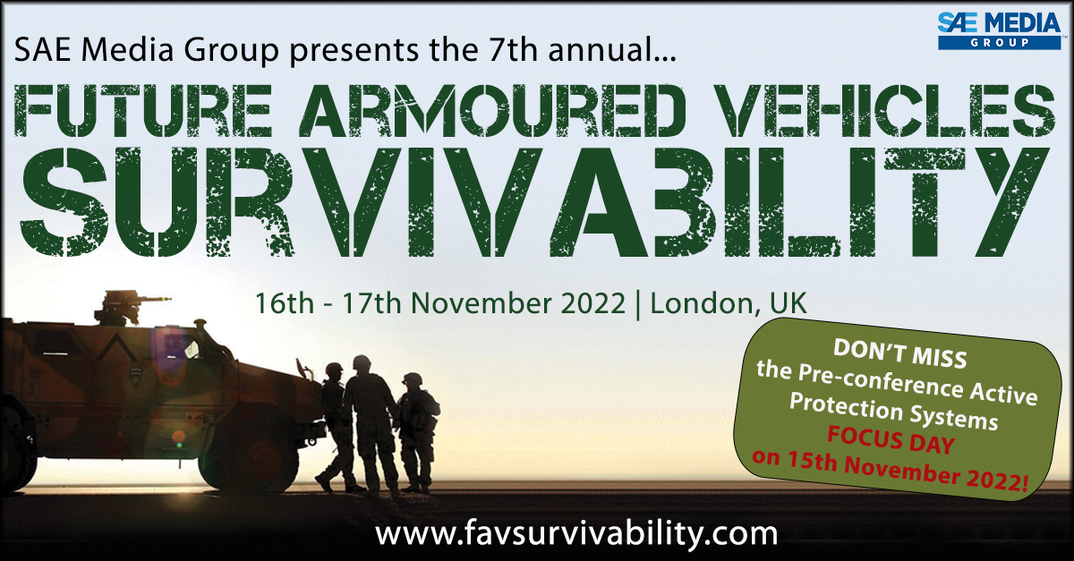 LONDON, UK, September 14, 2022 /EINPresswire.com/ -- The 7th Annual Future Armoured Vehicles Survivability Conference has returned to London, UK on the 16th and 17th November, along with the Active Protection Systems Focus Day running on the 15th of November 2022.