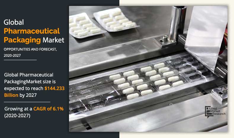 PORTLAND, OREGON, UNITED STATES, September 14, 2022 /EINPresswire.com/ -- As per the report published by Allied Market Research, the global Pharmaceutical Packaging Market accounted for $88.87 billion in 2019, and is estimated to hit $144.23 billion by 2027, registering a CAGR of 6.1% from 2020 to 2027. The report provides a quantitative analysis of current market trends, estimates and dynamics of the market size from 2019 to 2027 to identify the prevailing market opportunities.