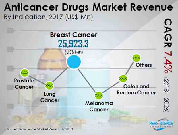 This report published by Persistence Market Research throws light on the revenue projections of the global market for anticancer drugs, which is estimated to reach a whopping valuation of US$ 227 Bn by the end of 2026, up from just under US$ 129 Bn in 2018. This is indicative of a growth rate of 7.4% during the period from 2018 to 2026.