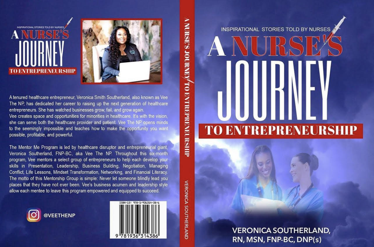 CHARLOTTE, NC, UNITED STATES, September 15, 2022 /EINPresswire.com/ -- Veronica Southerland, FNP-BC, and 18 of her other Mentor Me nurses announce their newest project A Nurse’s Journey To Entrepreneurship. Southerland also known as Vee The NP, owns Charlotte’s premier black-owned luxury wellness center FLO Hydration and Wellness, leads nurses throughout the country, and has spoken at the United Nations on behalf of minority nurses throughout the world.Southerland’s book is a culmination of decades of work within the nursing industry – from growing up with dreams of nursing to overcoming adversities such as racial disparities, teen pregnancies, and language barriers to see their childhood dreams become a reality.