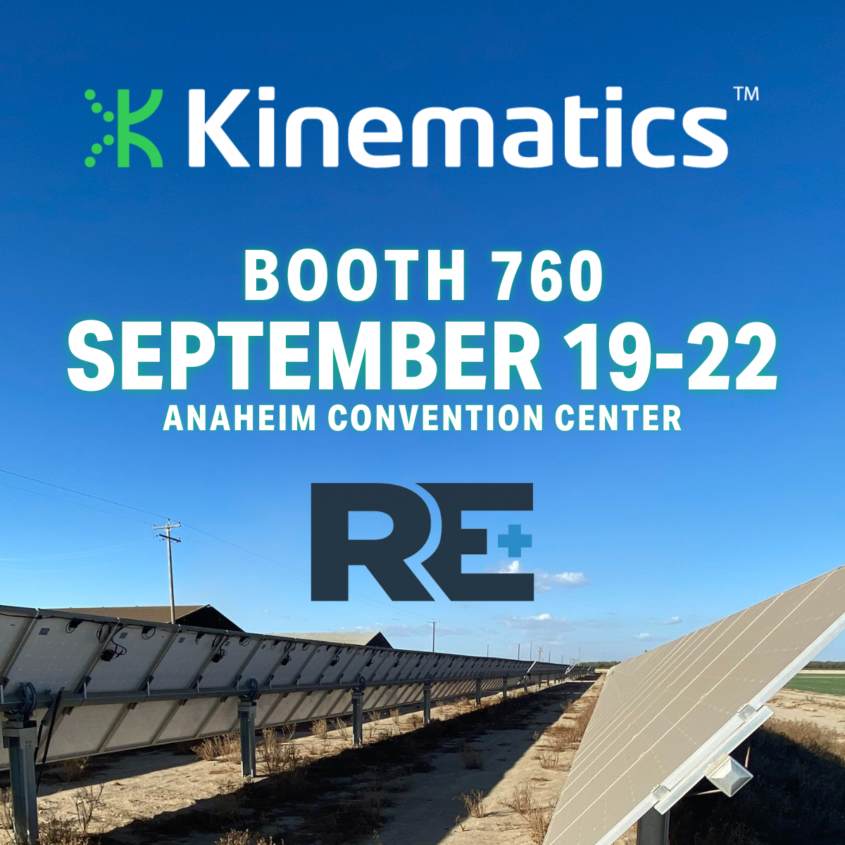 PHOENIX, Sept. 16, 2022 (GLOBE NEWSWIRE) -- Kinematics, www.gokinematics.com, a world leader in intelligent motion solutions, is excited to invite attendants of RE+ Sept. 19-22 at the Anaheim Convention Center in Anaheim, California, to booth 760 to learn more about two new product offerings on display: the ST line of solar actuators and the live Kinematics SmartDrive™ demonstration.