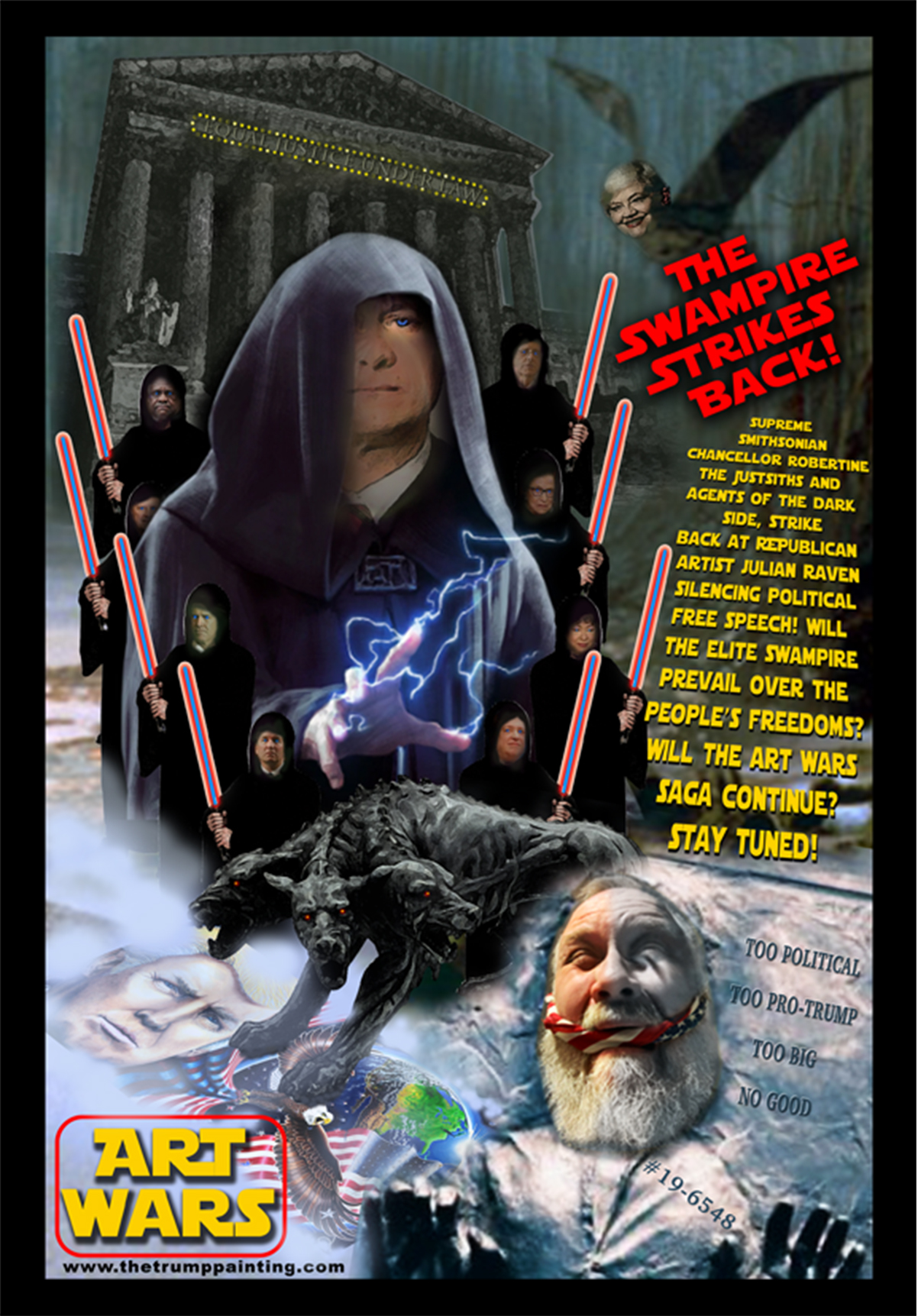This is artist Julian Raven’s story at the U.S. Supreme Court. The dangerous misuse happened to Raven’s 1st Amendment free-speech and viewpoint discrimination lawsuit against the Smithsonian Institution (Chief Justice John Roberts, also being Smithsonian Chancellor) and the Director of the National Portrait Gallery, the Australian citizen Kim Sajet.