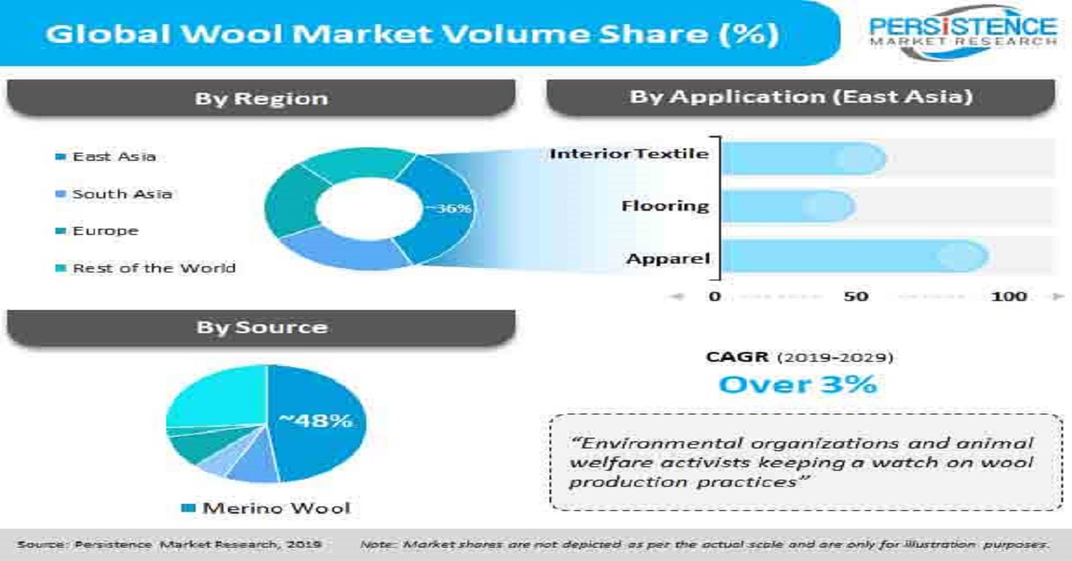 NEW YORK, NEW YORK, UNITED STATES, September 19, 2022 /EINPresswire.com/ -- A new wool market research report published by the Persistence Market Research (PMR) about the global wool market during 2014-2018 and forecast for 2019-2029 provides important insights about the dynamics, trends, volume, and value. According to the study, in 2018, the value of global wool market was approximately US$ 33.8 Bn. This value is expected to grow over the forecast period (2019-2029) to reach nearly US$ 49 Bn by 2029-end.