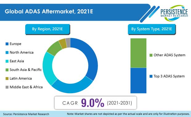 The ADAS aftermarket is characterized by the presence of major players from North America, Europe, and East Asia. Demand for passenger cars and commercial vehicles equipped with advanced safety features are increasing around the globe, which is expected to propel demand for technologically advanced products over the decade.