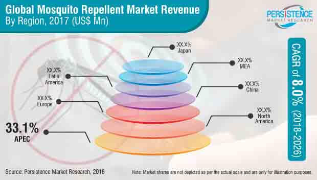 As per a recently published study on the global mosquito repellent market, by Persistence Market Research (PMR), developing economies are projected to exhibit high adoption of mosquito repellents, with APEC leading the suit. As per the report, APEC and China together account for approximately half the volume and value share—the demand further projected to grow at a significant CAGR.