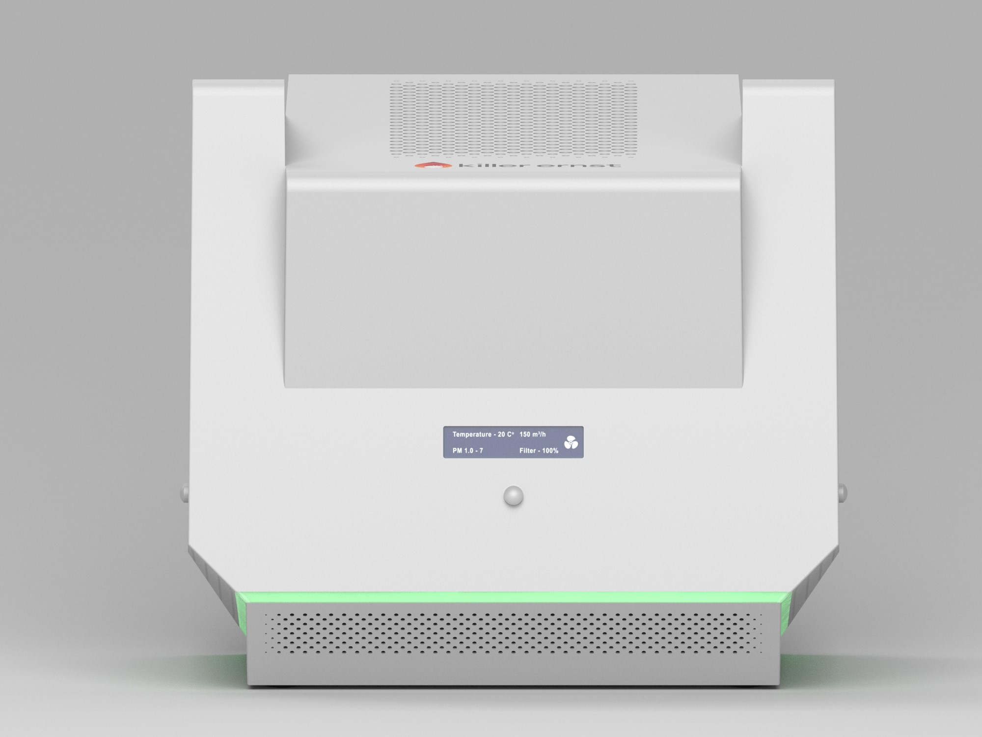 The Killer Ernst Air Filter from Vitality can be placed on any table with its compact size. This makes it easy to place the model in classrooms, offices and waiting rooms. There are models of various dimensions for each room size. When the Killer Ernst Air Filter is placed in a room, a sensor detects whether someone is in the room and adjusts the filter's operations accordingly. The device is very quiet due to an optimized air flow concept.