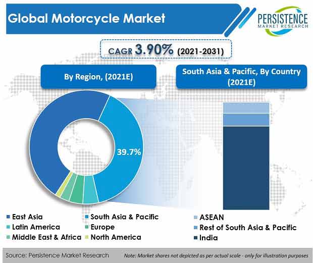 “Demand for motorcycles is anticipated to witness significant growth owing to introduction of various new motorcycles and scooters, rising urban population, technological enhancements, increased fuel efficiency, and better affordability,” says a Persistence Market Research analyst.