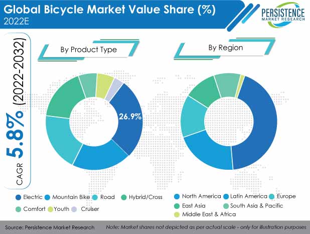 Electric bicycles' growing popularity combined with increase in the number of national and international cycling events is expected to present lucrative prospects to bicycle stakeholders. Electric bicycles will be an appealing segment during the evaluation period of 2022-2032 due to rapidly rising number of conscientious consumers.
