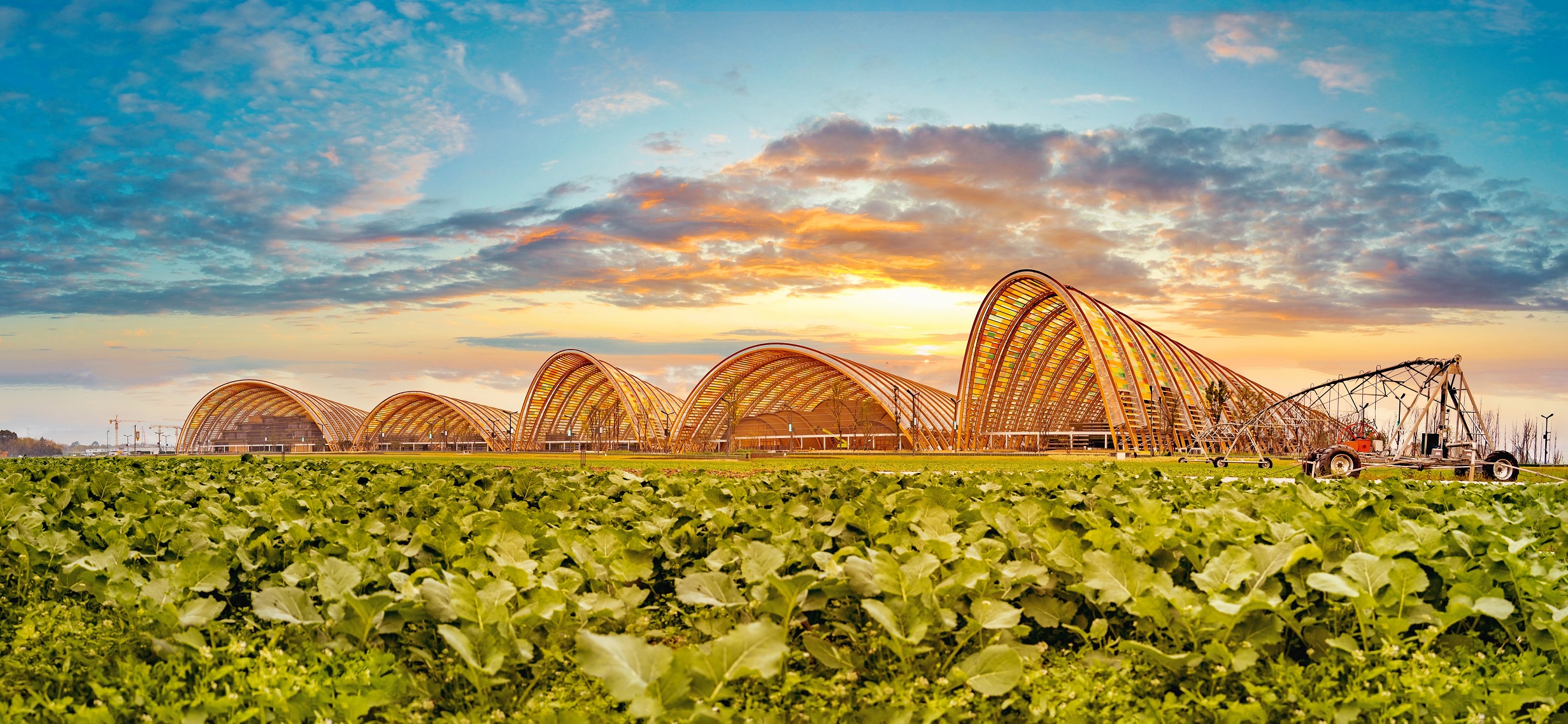 TIANFU AGRI-EXPO PARK CHINA covers an area of 113 square kilometres. In its core area——Tianfu Agri-Expo Island, the designs of main buildings apply the characteristics of Chinese farming seasons and solar terms. For example, the Science &Technology Innovation Linpan is in the shape of a green seedling, indicating spring. The Main Exhibition Hall is in the shape of a rice plant waving in the wind, indicating summer. The Smart Media Convergence Centre is in the shape of a barn, indicating autumn. The Cultural and Creative Linpan is in the shape of a mountain covered with snow, indicating winter. Besides, the 24-metre-high observation deck is called "24 Solar Terms Tower", and all meeting rooms in the Conference Centre are named after the 24 solar terms. With the concept of "running an agricultural expo in the fields", TIANFU AGRI-EXPO PARK CHINA has built a comprehensive exhibition space, including the indoor exhibition hall, outdoor exhibition area, as well as the exhibition areas of Linpan and field.