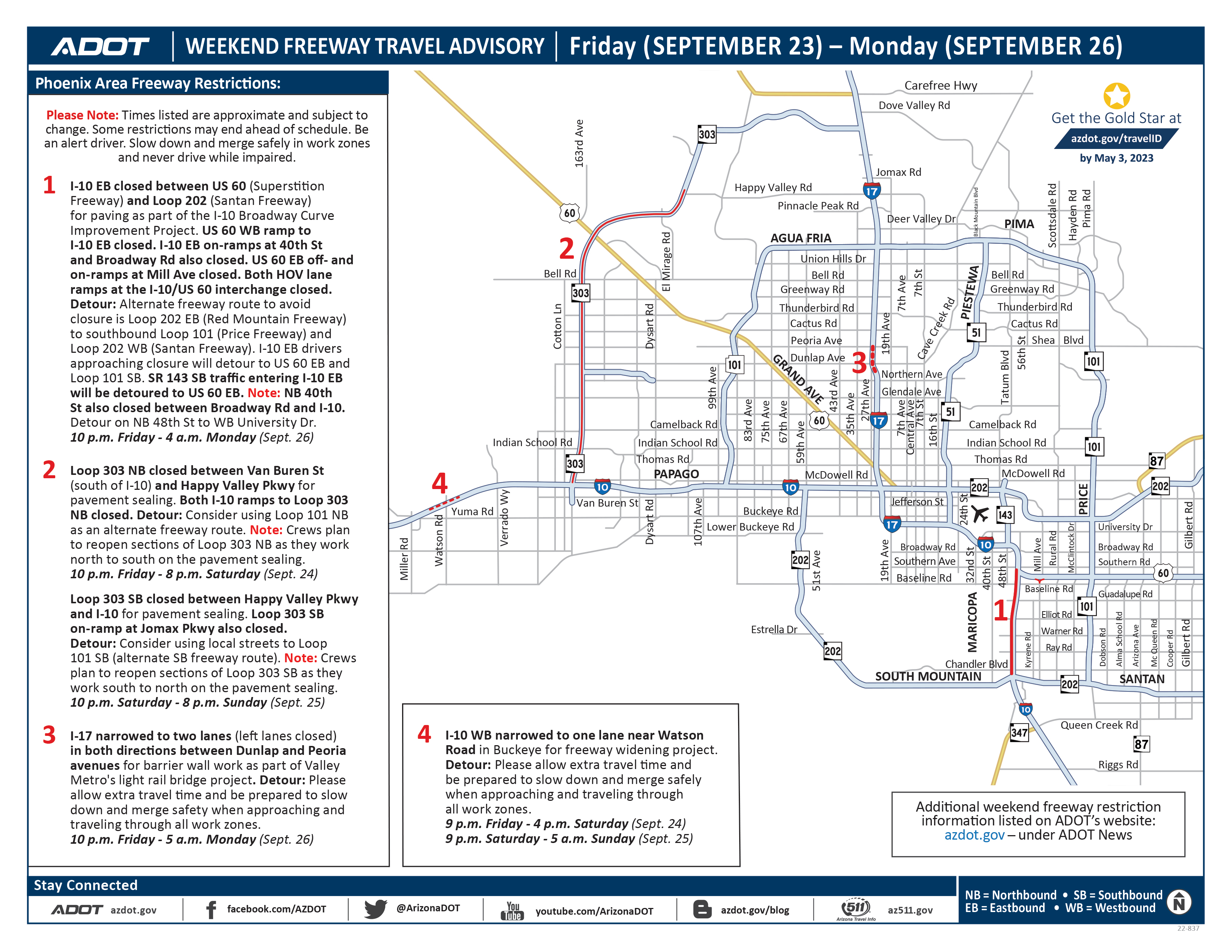 ADOT's Weekend Freeway Travel Advisory (Sept. 23-26) - Phoenix area