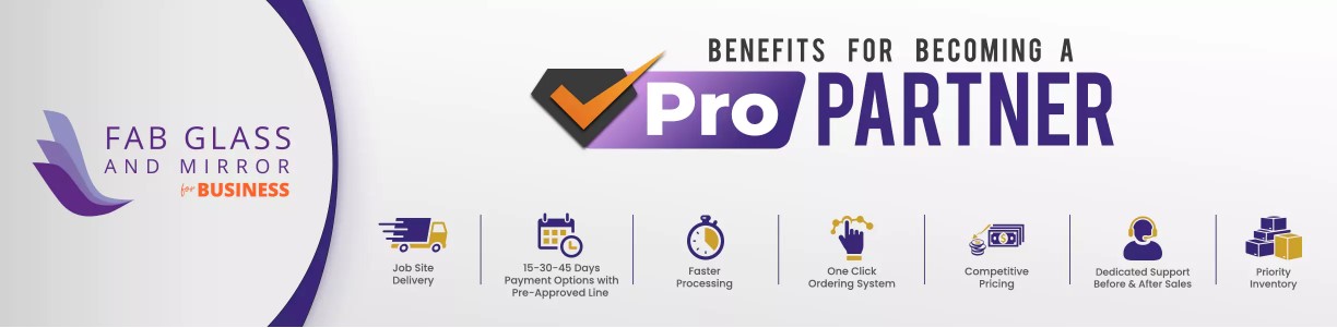 Pro partners won’t have to worry about delivering glass products to the job site. Fab Glass and Mirror offers job site delivery service for the ease of Fab Pros. Further, Pro business partners can order any type of glass through an easy-to-use online portal. Orders can be placed instantly. Pro Partners also get an option to pay through easy installments (up to 90-Days). There is also a dedicated customer support team to help Fab Pros choose the best available glass options and navigate the online portal conveniently. With all these exciting benefits, the company looks forward to facilitating their partnered businesses with even better services in the future.