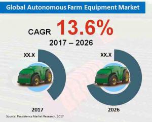 The report indicates that revenues from the global "Autonomous Farm Equipment" Market will increase at an impressive 13.6% CAGR during the forecast period, 2017-2026. The report further projects global sales of autonomous farm equipment to account for revenues worth nearly US$ 170 Bn by 2026-end.