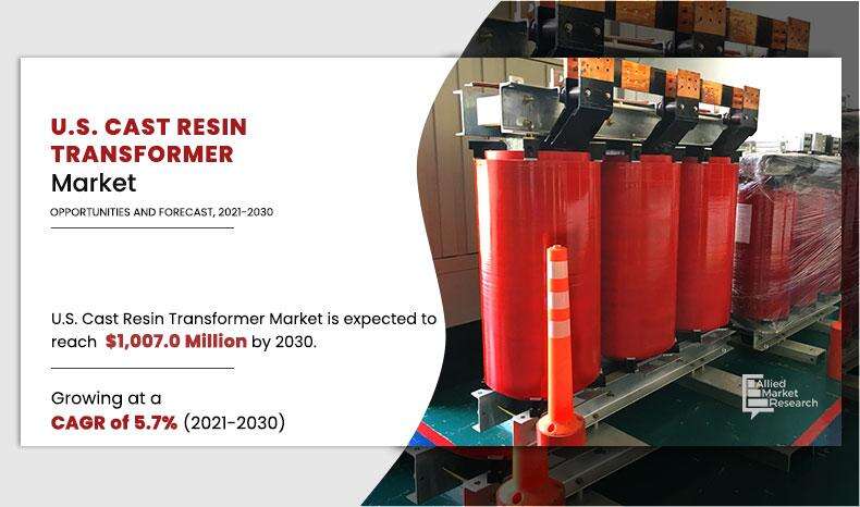 PORTLAND, OREGON, UNITED STATES, October 3, 2022 /EINPresswire.com/ -- According to the report published by Allied Market Research, the U.S. cast resin transformer market was pegged at $574.2 million in 2020 and is estimated to hit $1.00 billion by 2030, registering a CAGR of 5.7% from 2021 to 2030. The report provides an in-depth analysis of the top investment pockets, top winning strategies, drivers & opportunities, market size & estimations, competitive landscape, and changing market trends.