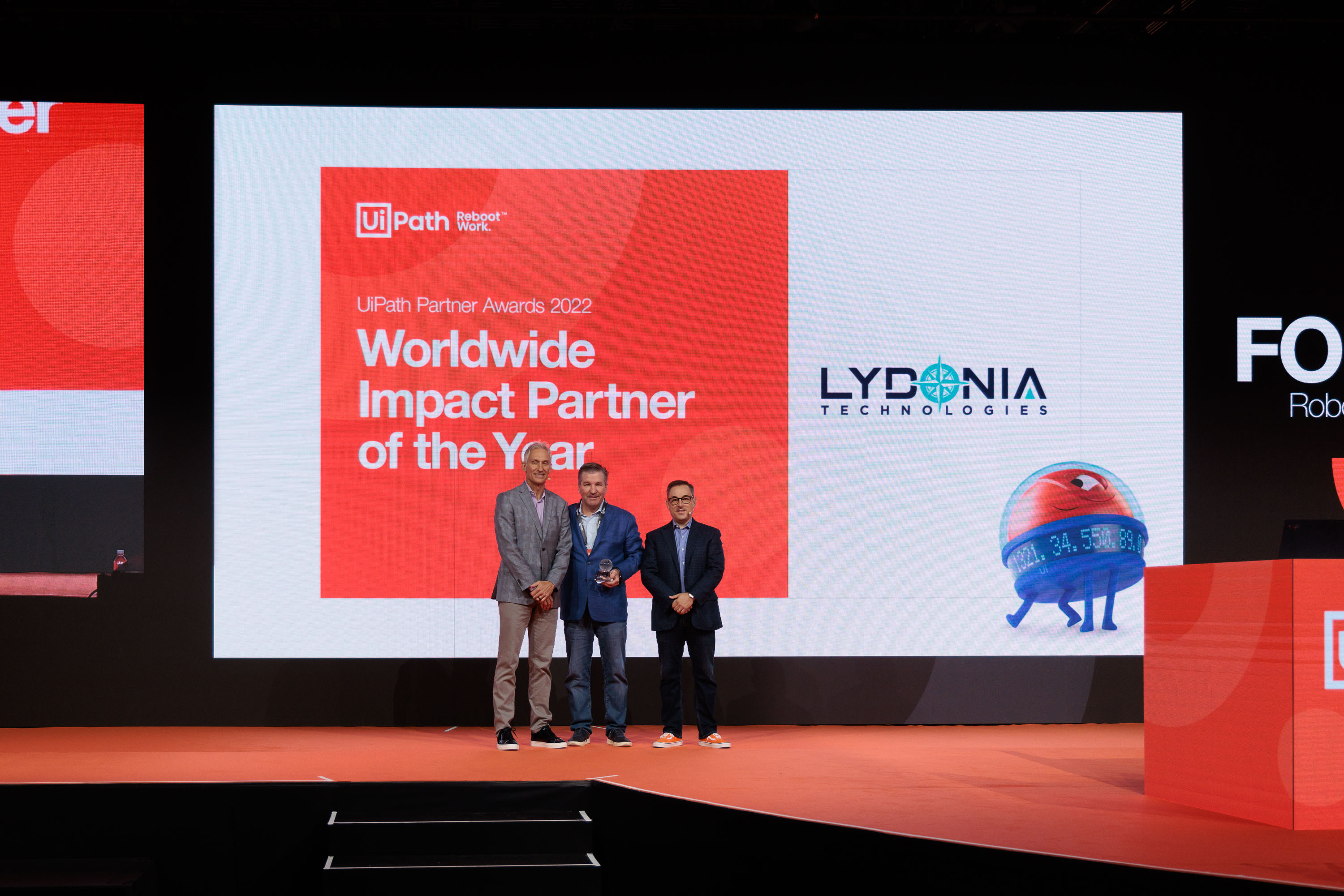 WESTWOOD, MASSACHUSETTS, UNITED STATES, October 4, 2022 /EINPresswire.com/ -- Lydonia Technologies today announced it has been named a UiPath 2022 Partner of the Year. The awards recognize partners who demonstrate commitment to collaboration, innovation, and success in guiding customers on their automation journeys. UiPath awarded Lydonia Technologies the 2022 Americas Impact Partner of the Year, as well as the 2022 Worldwide Impact Partner of the Year award during the UiPath FORWARD 5 conference in Las Vegas, the largest global gathering of automation professionals.