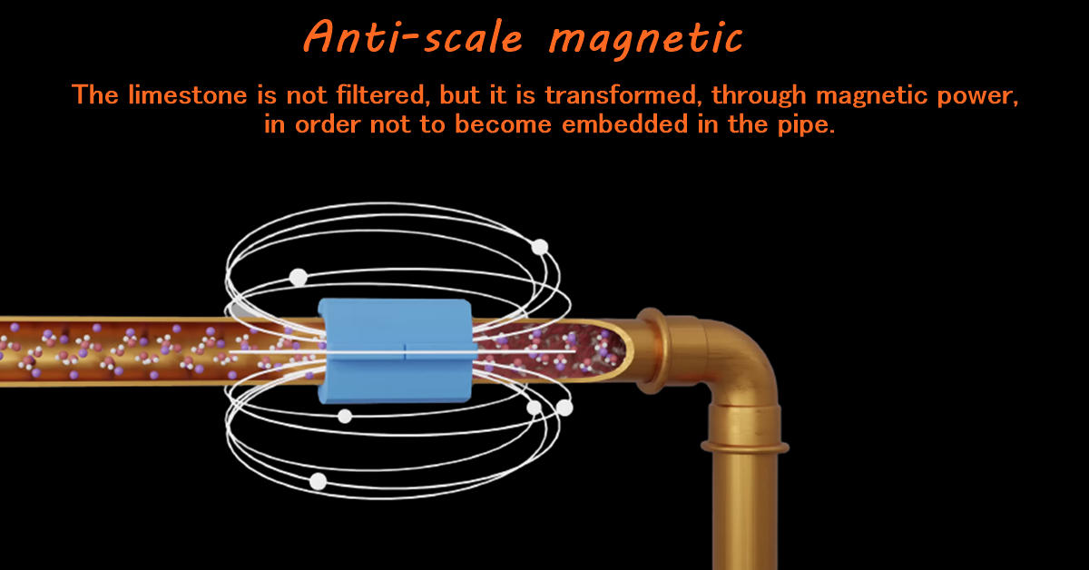 “Water consists of molecules. Any molecule is bipolar, therefore water molecules attract each other and form clusters. When water is heated, the cluster is destroyed and calcium carbonate is formed in the form of scale. Powerful permanent magnets create several fields simultaneously and the clusters disintegrate. Particles of salt that form scale are significantly reduced in size, and their settling on the inner walls of pipes and various equipment elements stops. In addition, the old scale begins to soften, loosen, and is gradually washed out of the equipment. Depending on the degree of scale contamination, it takes approximately 1 to 3-4 months to completely protect the equipment from the scale."