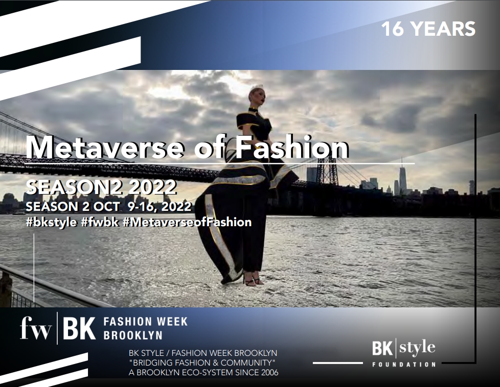 NEW YORK, NEW YORK, USA, October 6, 2022 /EINPresswire.com/ -- BK|Style Foundation (BK|SF) is the 501c3 non-profit organization behind Fashion Week Brooklyn (FWBK). The theme for 2022 Season 2, set for October 9th-16th, is Metaverse of Fashion. The bi-annual exhibition launched in 2006 and is made possible by community initiatives, partnerships, sponsorships, and fundraising efforts.