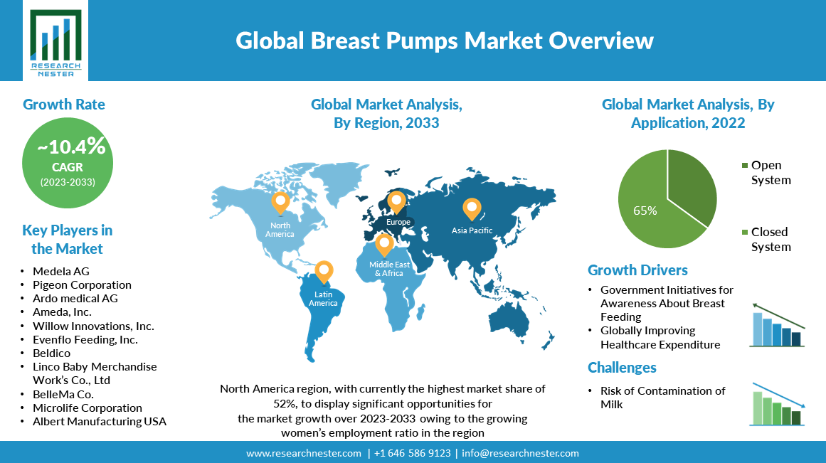 NEW YORK, NEW YORK, UNITED STATE, October 8, 2022 /EINPresswire.com/ -- Research Nester published a report titled “Breast Pumps Market”: Global Demand Analysis & Opportunity Outlook 2031” which delivers detailed overview of the global breast pumps market in terms of market segmentation by product type, technology, end-user, and by region.Further, for the in-depth analysis, the report encompasses the industry growth indicators, restraints, supply and demand risk, along with detailed discussion on current and future market trends that are associated with the growth of the market.