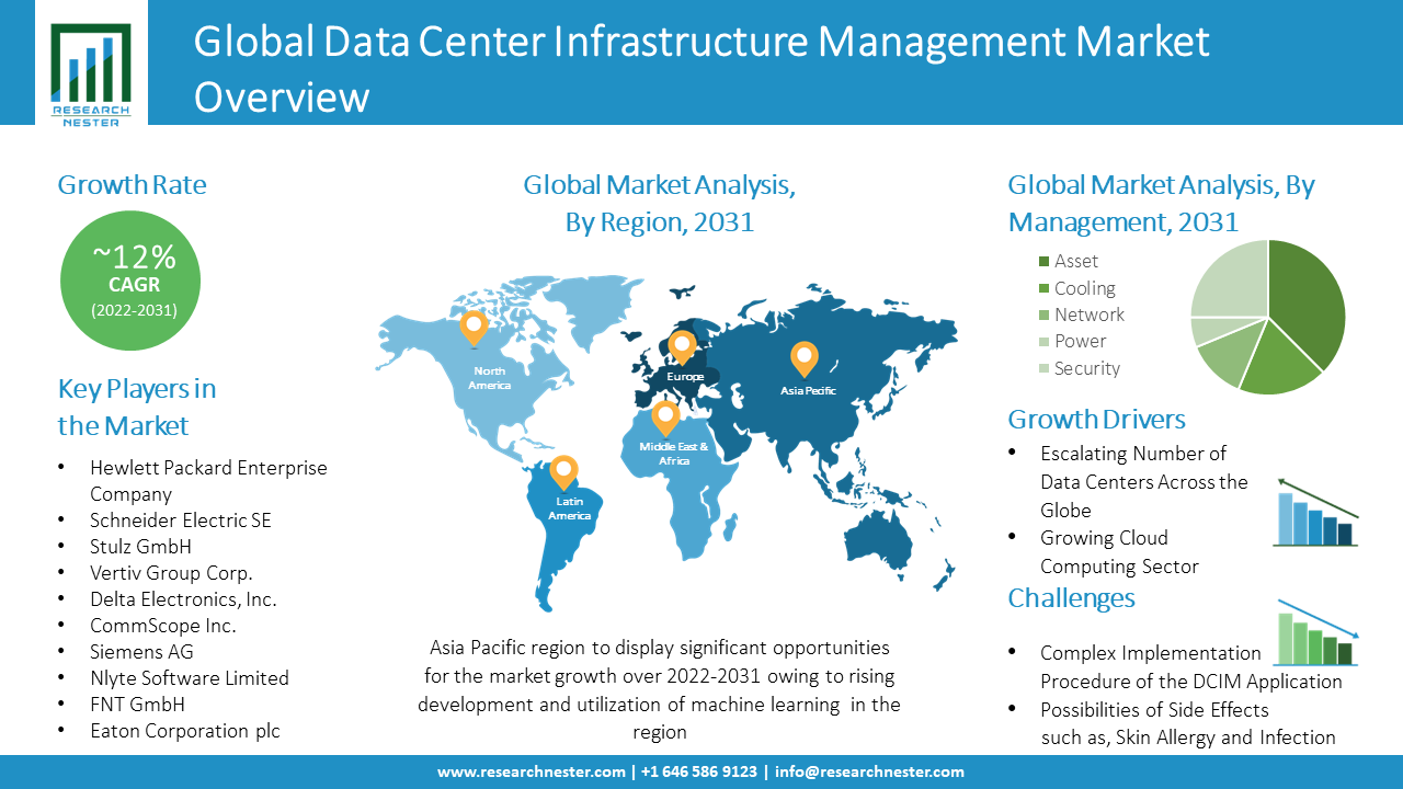 NEW YORK, NEW YORK, UNITED STATE, October 10, 2022 /EINPresswire.com/ -- Research Nester published a report titled “Data Center Infrastructure Management Market: Global Demand Analysis & Opportunity Outlook 2031” which delivers a detailed overview of the global data center infrastructure management market in terms of market segmentation by data center type, component, management, end-user, and by region.Further, for the in-depth analysis, the report encompasses the industry growth indicators, restraints, and supply and demand risk, along with a detailed discussion of current and future market trends that are associated with the growth of the market.