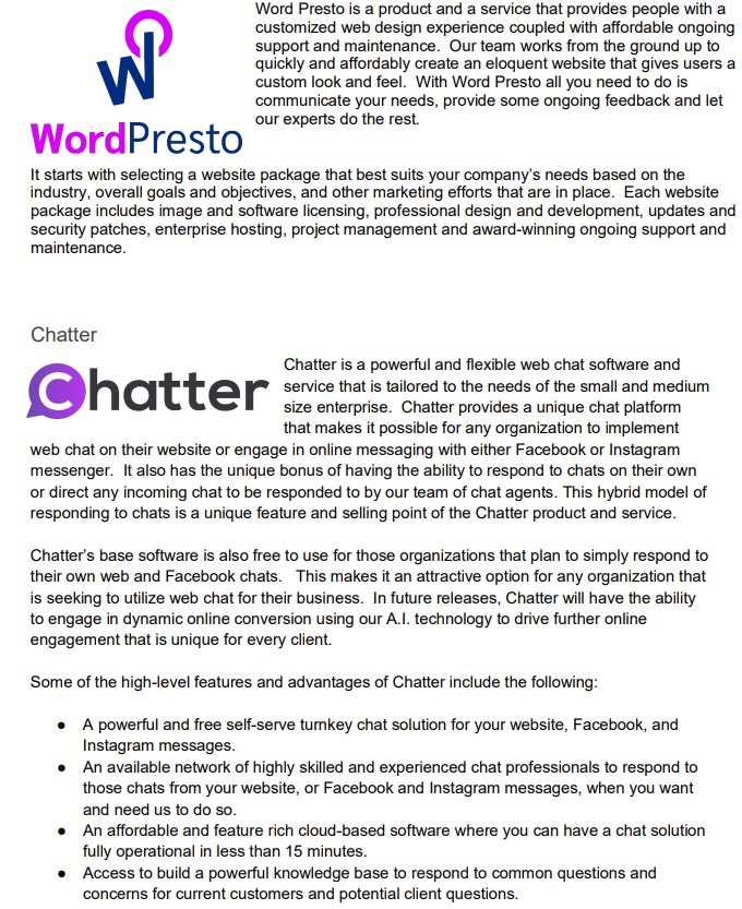 The launch event was hosted by Larry Lehoux, the CENBF President, and Chief Technology Officer, who states “WordPresto is the first scheduled launch of a new line of products which are in the process of being developed by CENBF. We are very excited to bring forth and continue seeking to develop leading consumer and business-focused products that utilize Artificial Intelligence-based technologies designed to make website development and maintenance more efficient and affordable. CENBF has fully embraced the power of Artificial Intelligence and intends to design a series of products and services that utilize A.I. technologies to make everyday life easier, more efficient informative, and entertaining.”