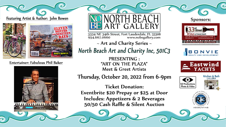 North Beach Art Gallery and North Beach Art and Charity 501C3 is excited to produce this very special event for their community while supporting the arts. Tickets are available on Eventbrite in advance for a Door Donation of $20 which includes 2 complimentary beverages and appetizer. The day of the show there is a Door Donation of $25. Through the support of community businesses there will be a Silent Auction. Finally, is the 50/50 cash raffle fundraiser.