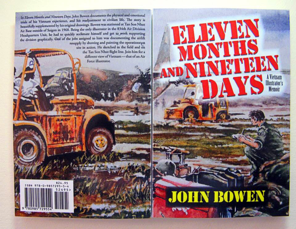 Born in New York City, John left the Northeast to become an Air Force Illustrator in 1961. After serving eight years, including a one-year tour in Vietnam as a “Combat Artist”, he left the service, moved to South Florida and spent the next 40 years as a commercial artist working in newspaper advertising. Retiring in 2008, John now spends his time as a professional painter and sells his beautiful watercolors. “Eleven Months and Nineteenth Days” is John’s self-published, award-winning, illustrated book, that documents his tour of duty in Vietnam, in 1968. It’s available from the author.
