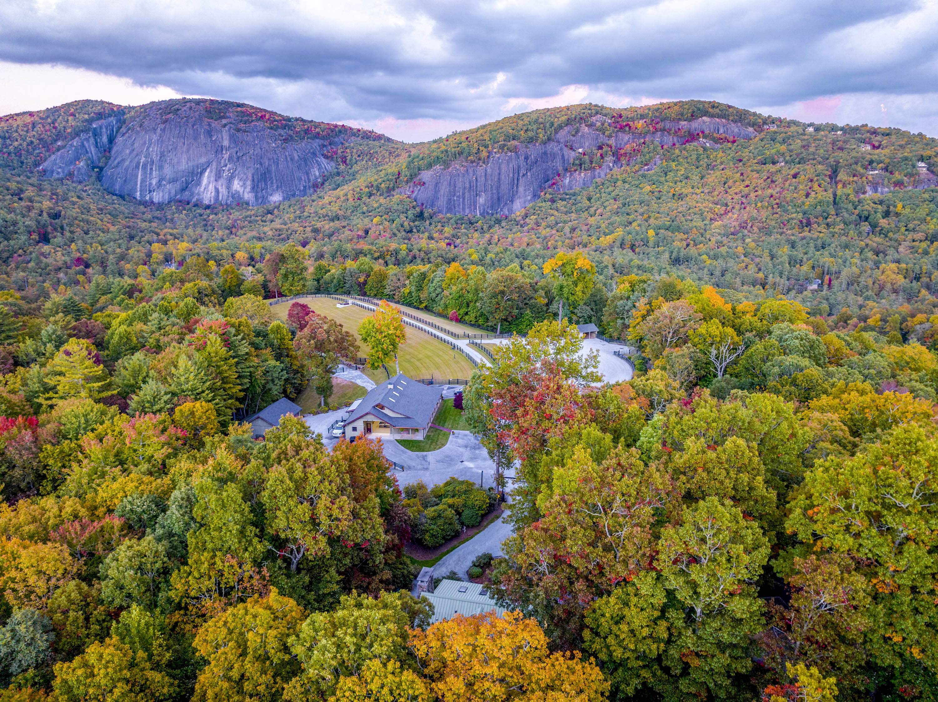 Designed by renowned architect Jim Fox and prestigiously selected as the 2014 Cashiers Designer Showhouse, this premier estate has only been improved upon since with extensive additions and renovations in every residence, bringing modern luxury to the picturesque and private property. Discover 40± acres of pristine pastoral land with a main house flanked by a two-bedroom guest house and additional two-bedroom bunk house. Soaring vaulted ceilings and incredible views can be found in each residence, acting as the perfect accent to exposed stone walls and rustic finishes befitting a luxury country inn. Across the entire property, breathtaking views of Laurel Knob and Cow Rock Mountains—a 1,400-foot stone edifice that combines to make the largest box canyon east of the Mississippi River—can be enjoyed. A new multi-discipline riding ring, four contiguous pastures, and a six-stall barn provide many opportunities for equestrians. Outbuildings, workshops, and garages ensure ample space for every hobby. When favorable weather calls, fish at Lake Glenville, along western North Carolina’s fabled fly-fishing trail, or in the trout-stocked pond on property, skeet shooting in the back pasture, or hike on the property's perimeter trails, all while pristine, lush landscaping and breath-taking views of Laurel Knob and Cow Rock Mountains paint a picture-perfect backdrop. With incredible entertaining spaces both indoors and out, host a gathering of any size that will wow the most discerning of guests.