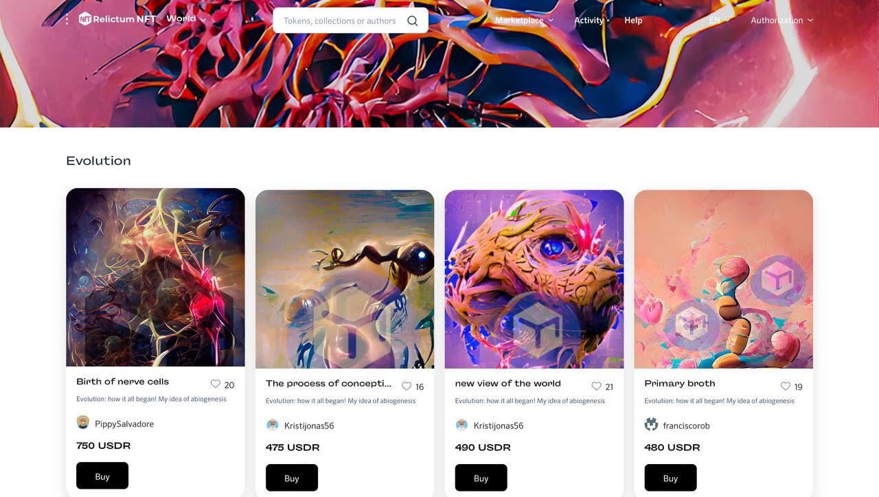The Relictum NFT marketplace is a platform for authors, where everyone can both showcase their work and patent it. All the essential NFT positioning factors are considered: price for placement, copyright protection, and traffic.