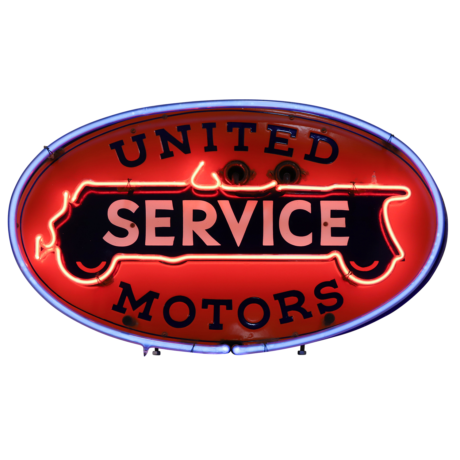 American-made 1930s United Motors Service single-sided porcelain neon sign with original neon, insulators, transformer and can, never been apart (est. CA$20,000-$25,000).
