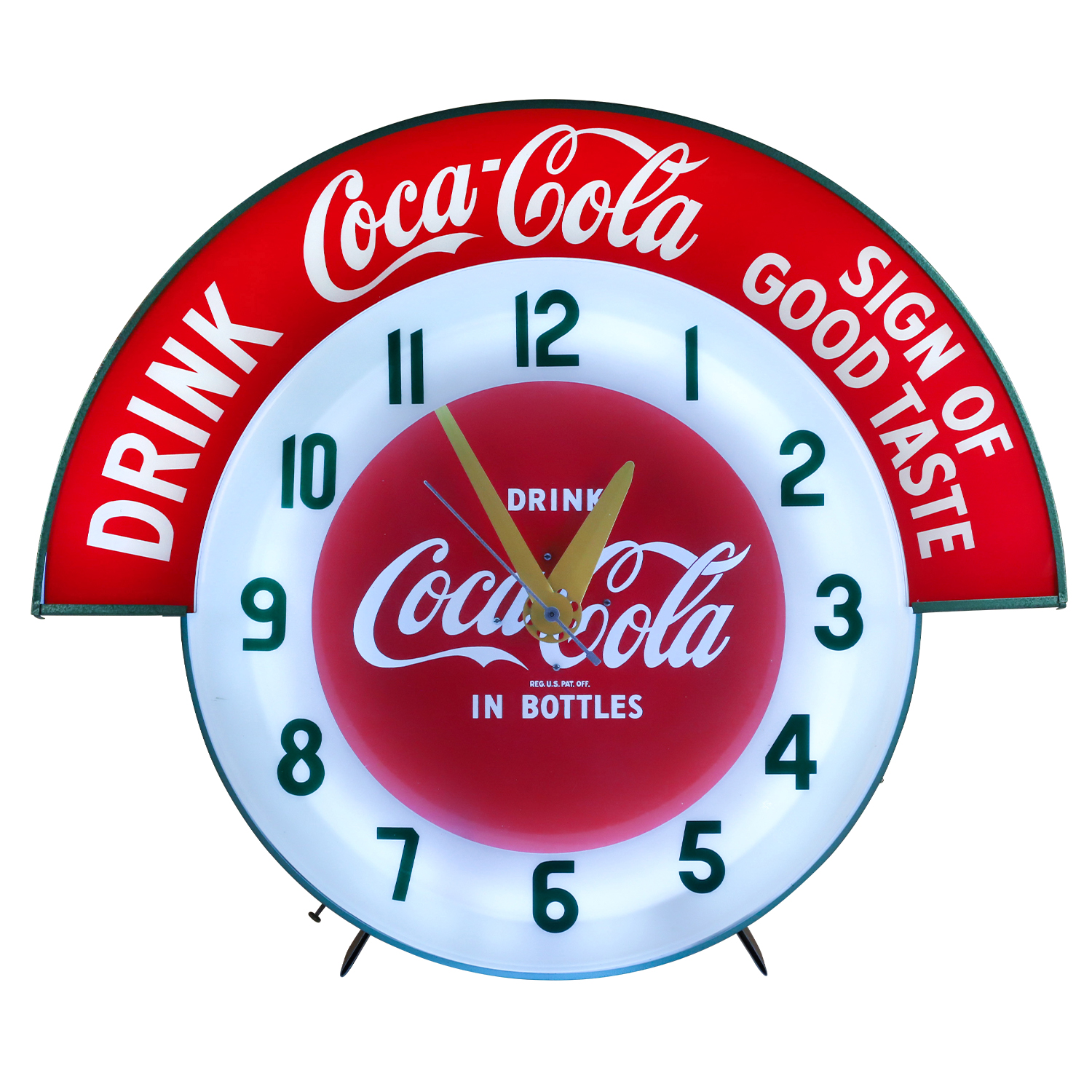 • A Coca-Cola clock (American, 1950s) having a painted metal dial with neon backlit acrylic dial cover and marquee. An excellent example, with all original components. Marked, "Electric Neon Clock Co., Cleveland” (est. $4,000-$6,000).