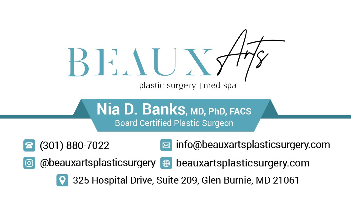 Dr. Nia Banks is a board-certified plastic surgeon practicing in the Washington, DC and Baltimore area, as well as the surrounding communities. She received her surgical training at Johns Hopkins Hospital in Baltimore, where she completed the Integrated Residency Program in plastic and reconstructive surgery. Dr. Banks is the Chief of Plastic Surgery at Doctors Community Hospital in Lanham, Maryland, a member of the American Society of Plastic Surgeons, a diplomate of the American Board of Plastic Surgery, a member of the Alpha Omega Alpha medical honor society and a Fellow of the American College of Surgeons. She is a patron of the arts and a charter member of the National Museum of African American History and Culture. Dr. Banks has been featured on many television and radio programs around the country, with on-air appearances that are informative, entertaining, and inspirational. Her mission is to keep her patients up to date on the ever-evolving field of plastic and reconstructive surgery. Her dedication to her patients is paramount, and her experiences have afforded her the ability to address a vast array of both aesthetic and reconstructive concerns.