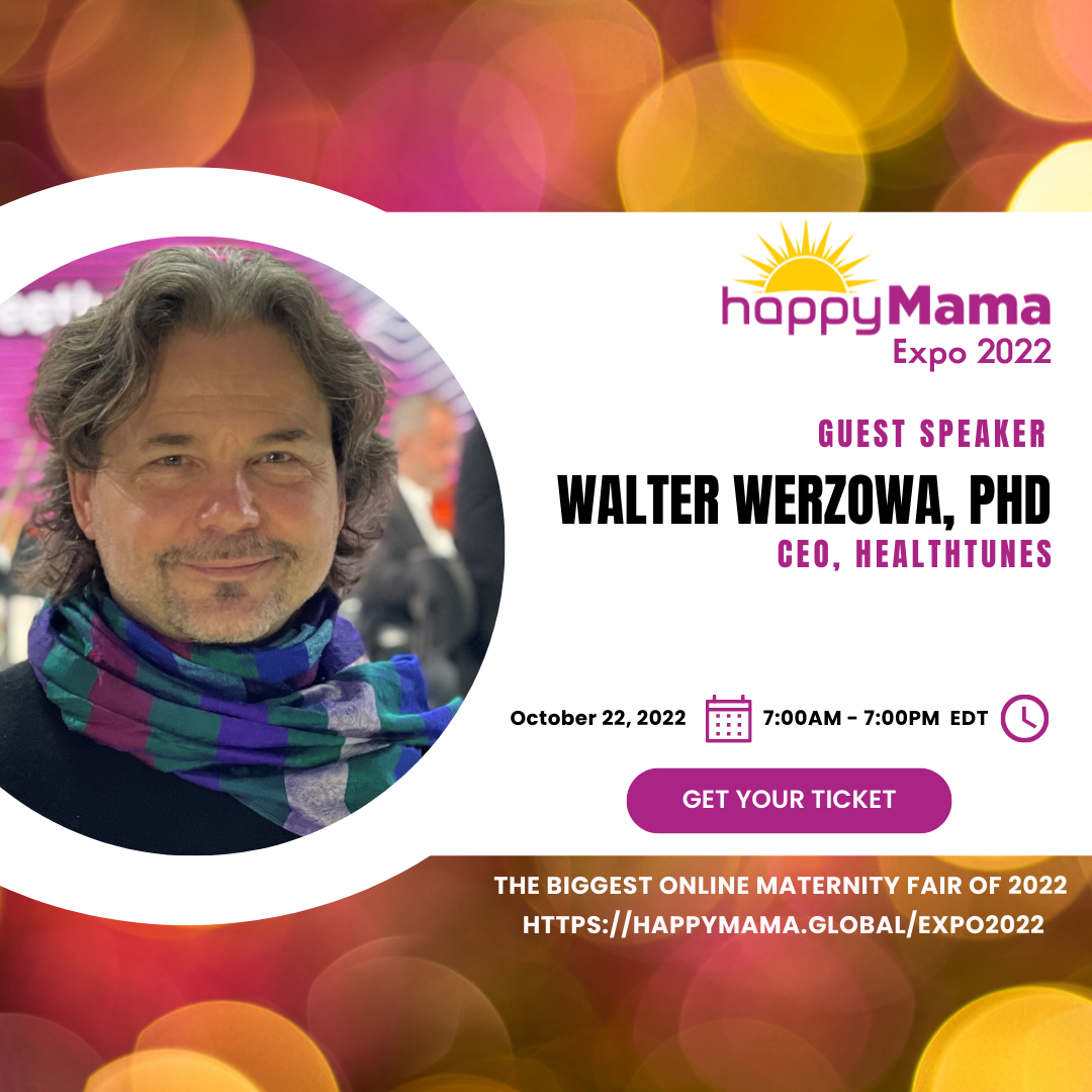 Headlining Reach's Happy Mama Expo will be Walter Werzowa, award-winning Austrian composer and CEO of HealthTunes, on Saturday, Oct. 22. "Music brings us together. It touches and moves us and creates a bond between you and your baby," describes Werzowa. At the Happy Mama Expo, Werzowa will demonstrate the art of music and guided meditations on the mother's well-being and health.