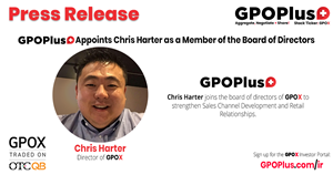 GPO Plus, Inc. (OTCQB: GPOX), a publicly traded company of diversified Group Purchasing Organizations (GPOs) uses the power of Group Purchasing to save businesses money, announced Chris Harter has been appointed to the Board of Directors.