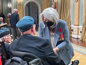 As viceregal patron of The Royal Canadian Legion, The Governor General pinned poppies on a number of Veterans and guests.