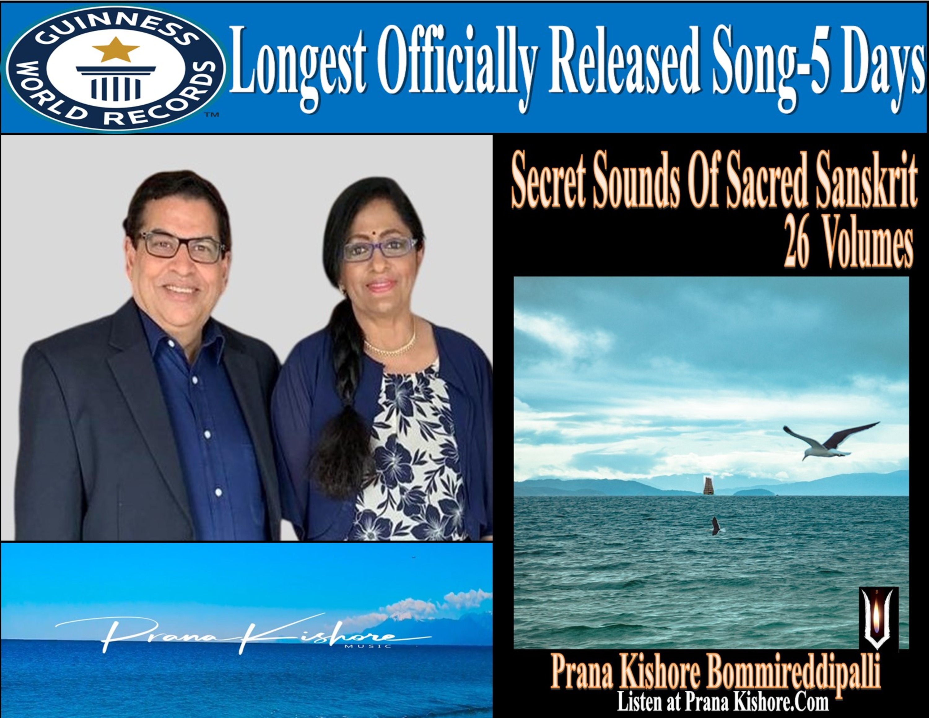 CHENNAI, TAMILNADU, INDIA, October 26, 2022 /EINPresswire.com/ -- Rishi Sunak, has embraced his Indian and Hindu heritage has been public about his Indian origins, “I am thoroughly British, this is my home and my country, but my cultural heritage is Indian,” he told reporters in 2020.Indian American from Chennai Prana Kishore Bommireddipalli (Prana Kishore) wins Guinness World Record for Longest Officially Released Song won only by English songs last 65 years, replaces the English songs with his song in Sanskrit “Secret Sounds of Sacred Sanskrit”.