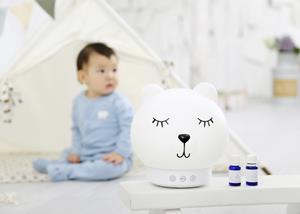 The Baby Dream Machine packs together five features that combine to help sleep quality and quantity: a night light, a calming red light, a sound machine with pink noise, a cool-mist humidifier and an essential oil diffuser.