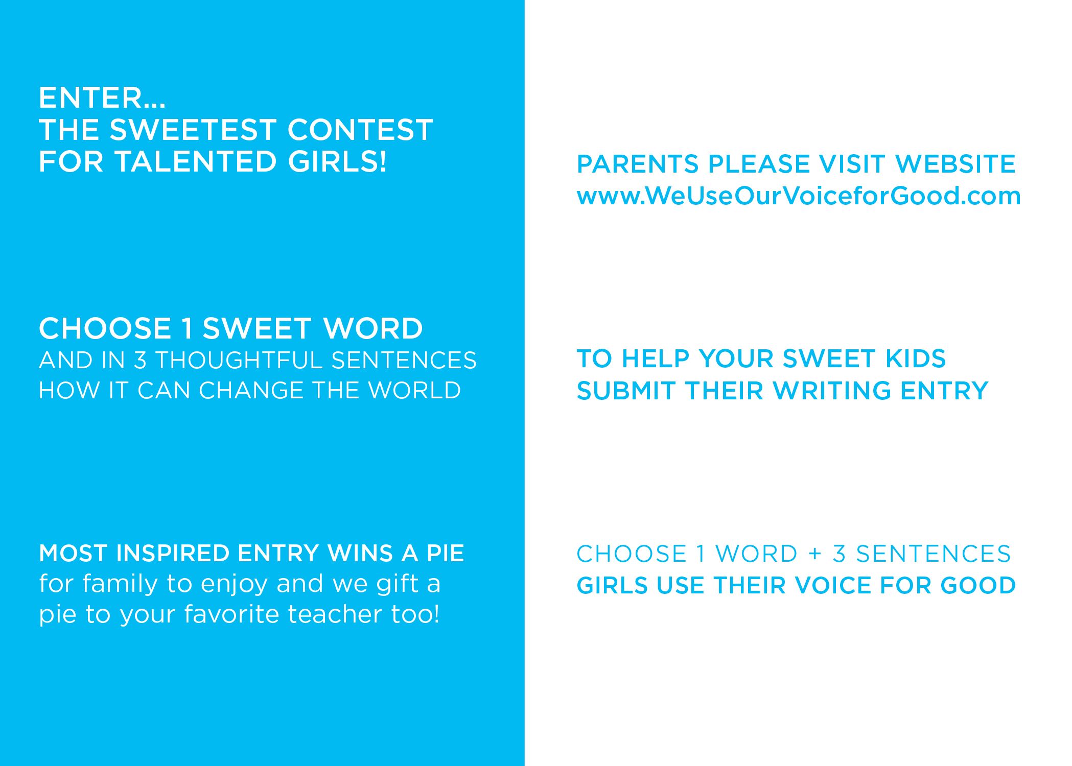 It's A Sweet Day in LA, Recruiting for Good is sponsoring The Sweetest Girls Writing Contest (for Talented Middle School Students); We Use Our Voice for Good to make a positive impact.