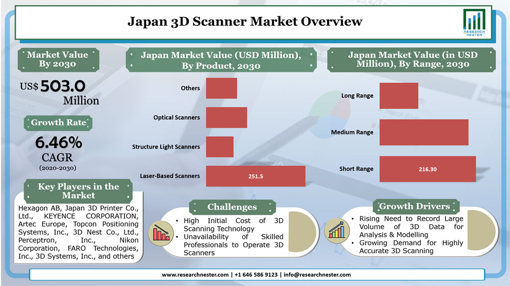 Japan 3D Scanner Market Size Worth USD 503.0 Million by 203 Growing at a CAGR of 6.46%