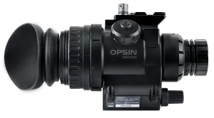 OPSIN is rich with digital features, with an extra-large 1920x1080 HD micro-OLED display and minimally designed menus and metadata overlays to keep the operator's field of view broad and clear.This wide, edge-to-edge field of view provides an immersive experience for the user for optimal situational awareness. The user-selectable frame rate, adjustable from 30/60/90 fps, offers imperceptible latency to adapt between moving or stand-and-stare operations. The operator can navigate and view current coordinates to maintain geo-awareness with the onboard digital magnetic compass and GPS antenna. OPSIN features a simple three-button interface with quick functions to navigate the internal menu.