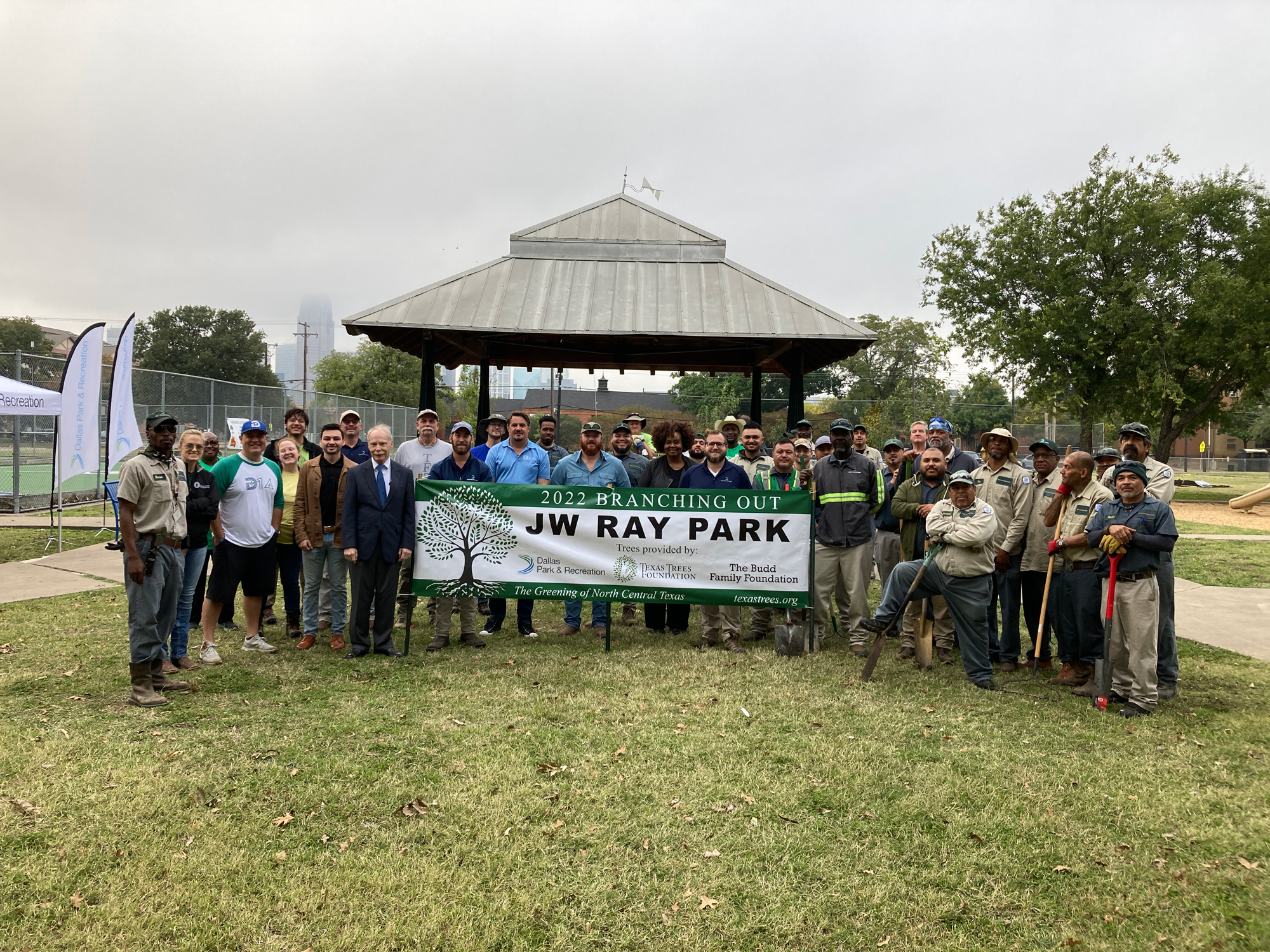 J.W. Ray Park received 50 new trees as part of a partnership with Texas Trees Foundation, The Budd Family Foundation, and Dallas Parks and Recreation. The trees were planted by more than 40 staff, community volunteers and foresters from Texas Trees Foundation and Dallas Park and Recreation as part of the Branching Out Program that aims to mitigate urban heat and increase the tree canopy coverage in Dallas.