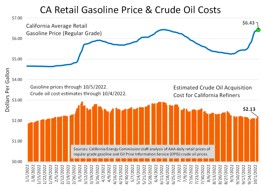Big oil was making these record profits at a time when Californians were seeing gas price hikes at the pump, despite the fact that the cost of crude oil was down:
