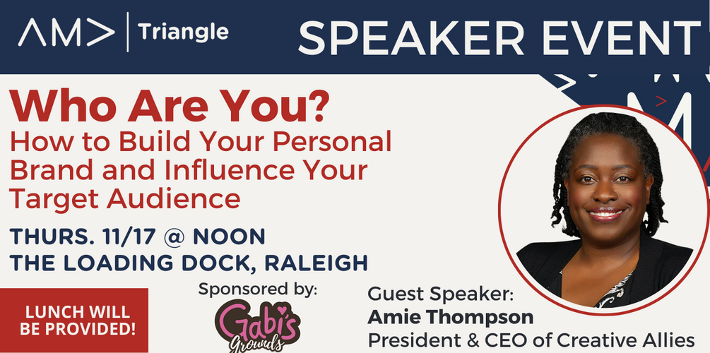 Registration for this event is required and space is limited. Lunch will be provided. To register, please visit https://www.amatriangle.org/event/owning-your-personal-brand/.