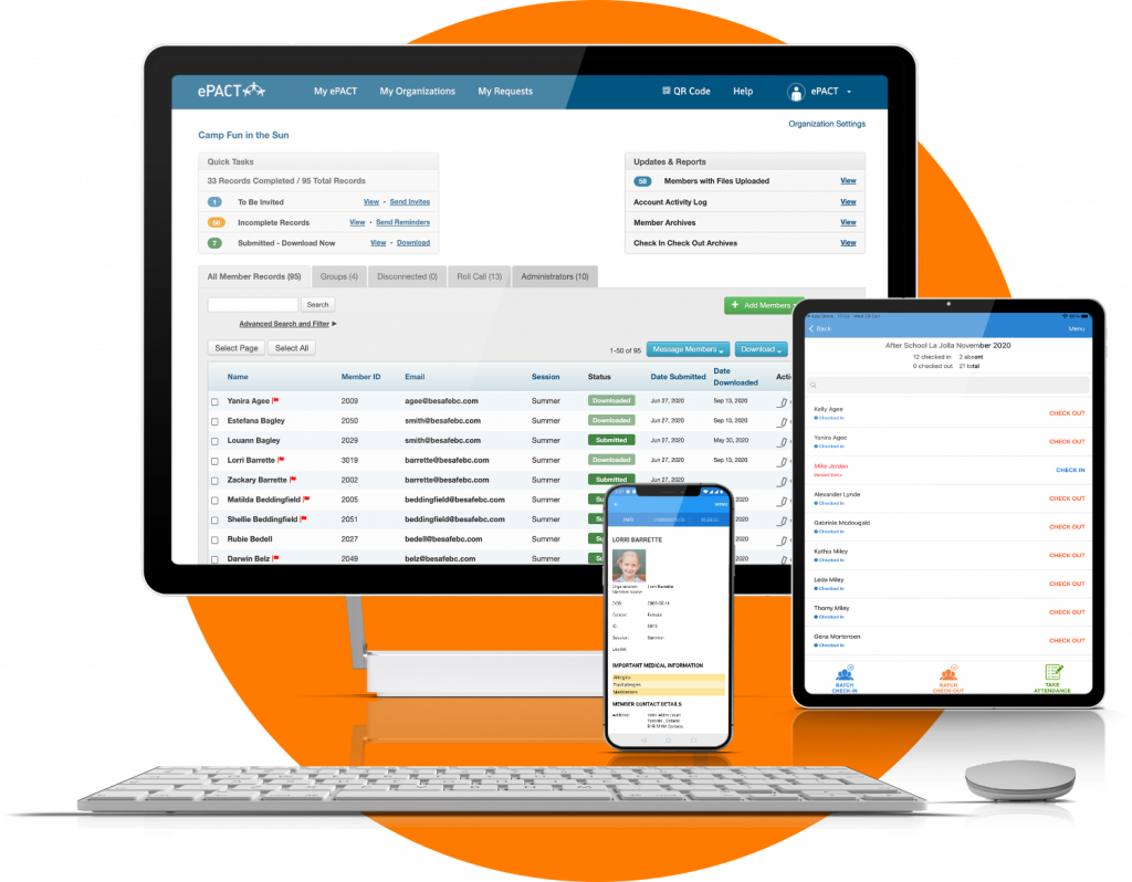 ePACT's online emergency network helps recreation departments, YMCAs, educational institutions, camps, childcare, youth sports, and many other organizations eliminate the paper forms used to collect emergency contact and medical information, waivers, and consents from families registering for their programs and services. Automating customizable electronic health records, waivers, vaccine tracking, COVID-19 health screening, contactless check-in/out, and emergency communications via text, email, and voice enables ePACT to significantly reduce the customer's heavy administrative workload. ePACT provides an industry-leading experience to patrons supplying information, mitigates risk for organizations, and ensures easy access to emergency information via website and mobile App even when offline.